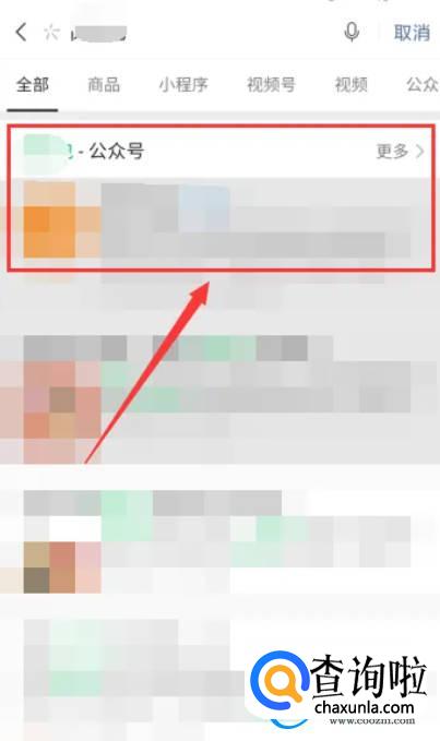 在搜索结果里点击公众号进入