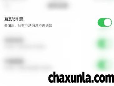 消息设置界面中点击互动消息后面的圆点。将圆点变成绿色的就可以了。