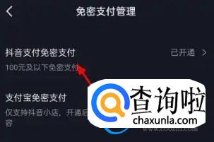 如图所示。自己在免密支付管理,点击(抖音支付免密支付),进入页面。