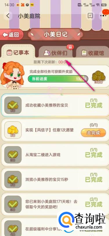 界面跳转,即可查看小美庭院伙伴馈赠。