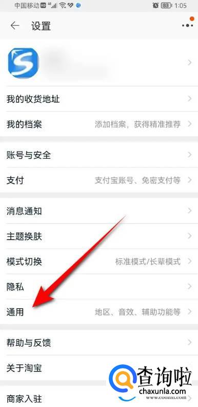 点击“通用”。