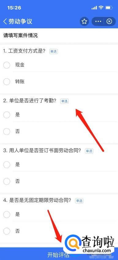 最后填写案件相关信息,点击【开始评估】即可知道无故辞退赔偿金怎么算。