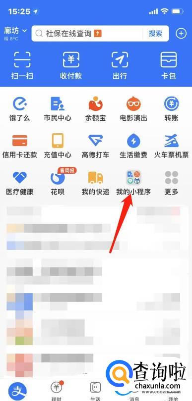 打开手机支付宝app,点击进入【我的小程序。】