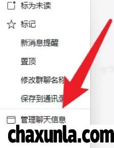 选中群聊鼠标右击,点击管理聊天信息。