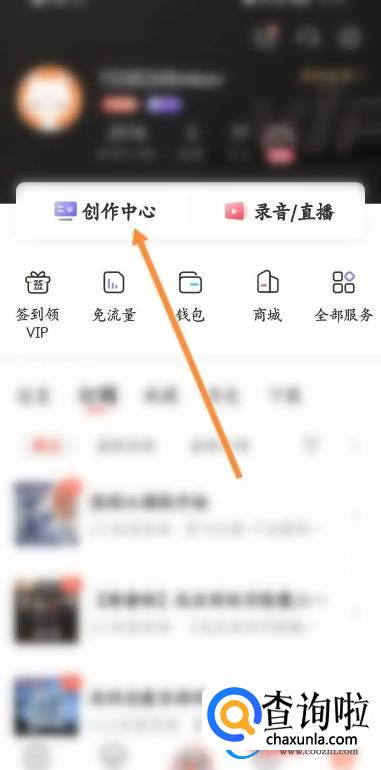 然后点击上面的创作中心。