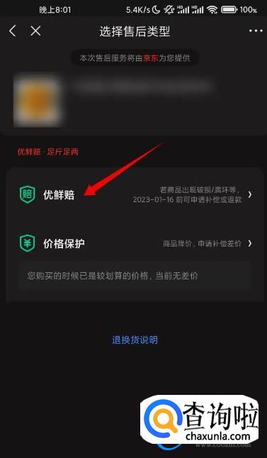 来到选择售后类型页面中,点击优鲜赔的选项。