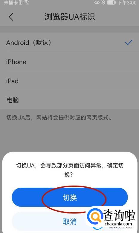 调出切换UA的提示对话框点击【切换】选项。
