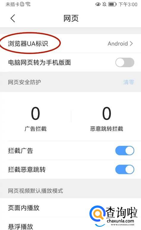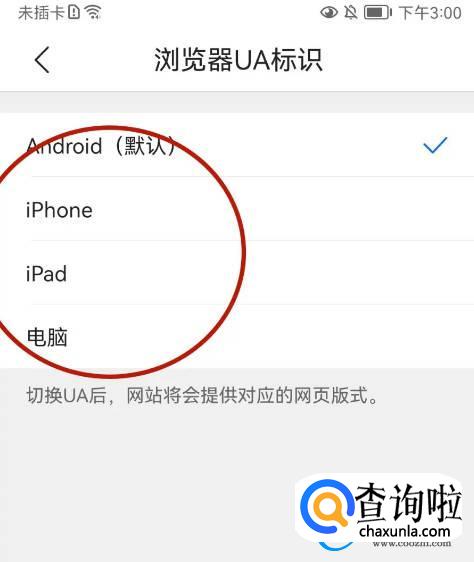 进入浏览器UA标识的页面点击【要切换的UA标识】选项;