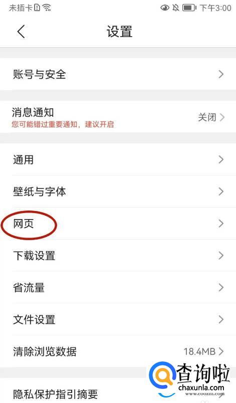 进入设置的页面点击【网页】选项;