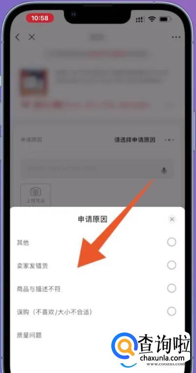 在申请原因页面中,选择一个理由。
