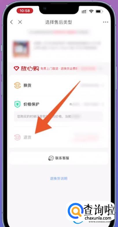 跳转进入新的页面之后,点击页面中的【退货】。