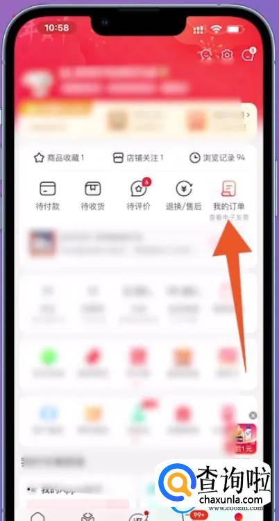 切换进入个人主页面之后,点击页面中的【我的订单】。
