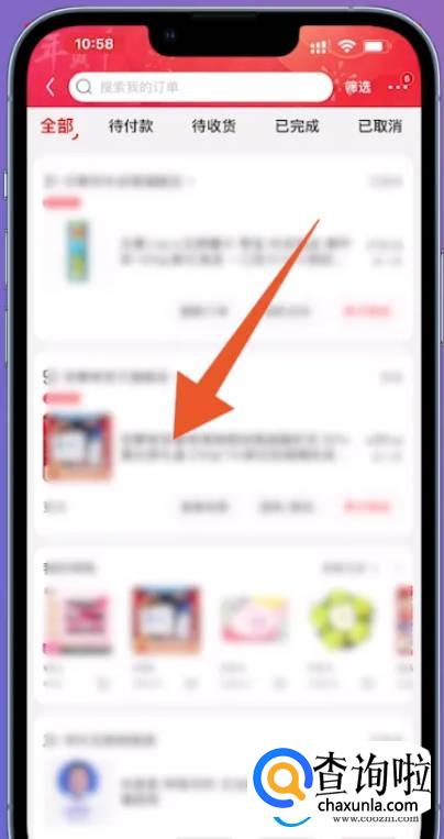 打开订单页面之后,选择要退货的商品。