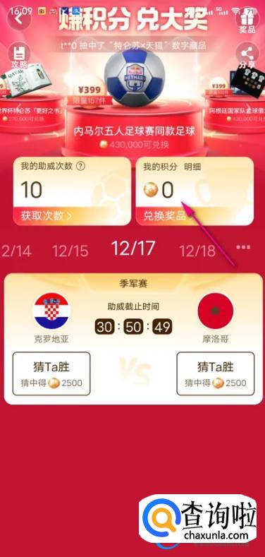 查看个人积分,点击中间的数字藏品活动。