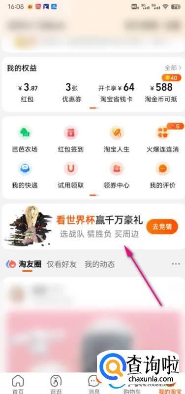 在个人中心界面,点击世界杯活动图标。