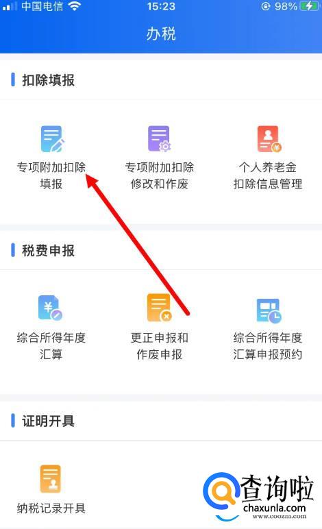 然后,点击【专项附加-扣除填报】。