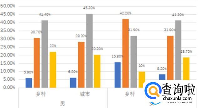 根据问卷调查显示,不管是男性还是女性,城市或者是农村30岁以上的大龄未婚青年都非常普遍。中国经济发展非常的快速,尤其是80后,90后以及00后的人即使出生在农村,在长大之后也习惯在城市生活,家乡经过快速的发展,建设和城市中的生活,已经没有什么太大的差别。