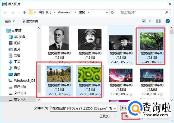 弹出的界面,我们选中多张图片,然后我们点击插入;