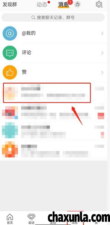 首先打开微博软件,找到消息点击你要选择的群聊。