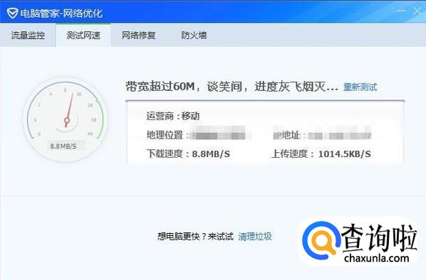 通过以上操作,我们就可以知道我们所连接的宽带的网速了。