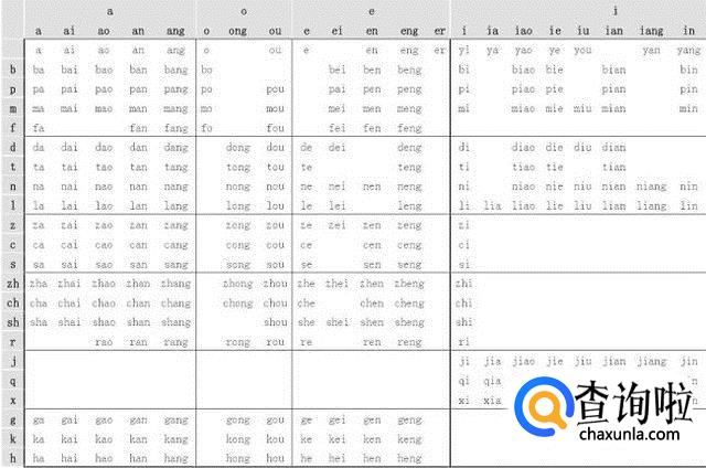 复韵母 ai[哀] ei[唉] ui[威] ao[奥] ou[欧] iu[由] ie[耶] üe[椰] er[儿]