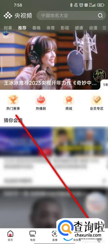 进入央视频APP首页,选择右下角【我的】打开个人页。