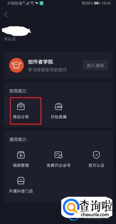 第一步抖音开通自动回复功能有两种方法,一种是开通商品分享能力,一种是开通企业号