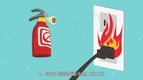 将灭火器提子着火点上风口处,距离火源大约两米左右,不要离火源太远或者太近。