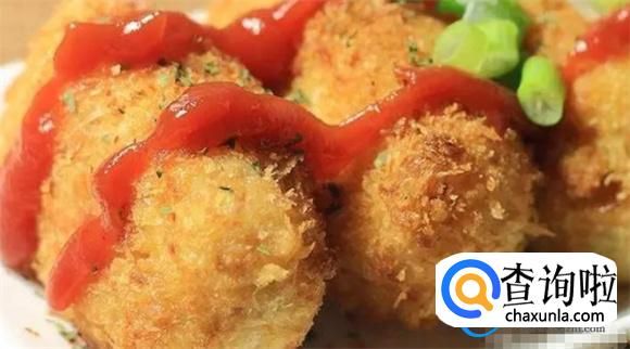 具体做法如下:土豆去皮切块,上锅蒸熟,鸡胸肉剁成肉末,白洋葱切成碎丁,锅中放入黄油融化,炒香洋葱丁;放入鸡肉碎炒变色,调入盐、白糖、白胡椒粉炒匀,备好面粉、鸡蛋液和面包糠,土豆蒸熟碾压成泥,倒入炒好的鸡胸肉搅拌均匀,取适量揉团后压成饼状,依次沾裹上面粉、鸡蛋液和面包糠,将剩余的都做好,备用,热油锅,将处理好的可乐饼胚放入油炸;两面成金黄色,即可捞出用厨房纸吸油装盘,挤上番茄酱即可! - 03