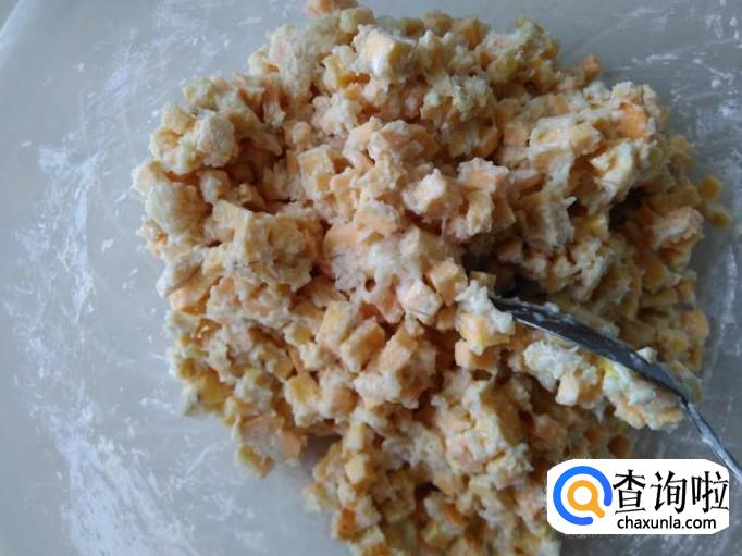 切成很细的小丁。【小丁要切细点,煎的时候才容易熟】