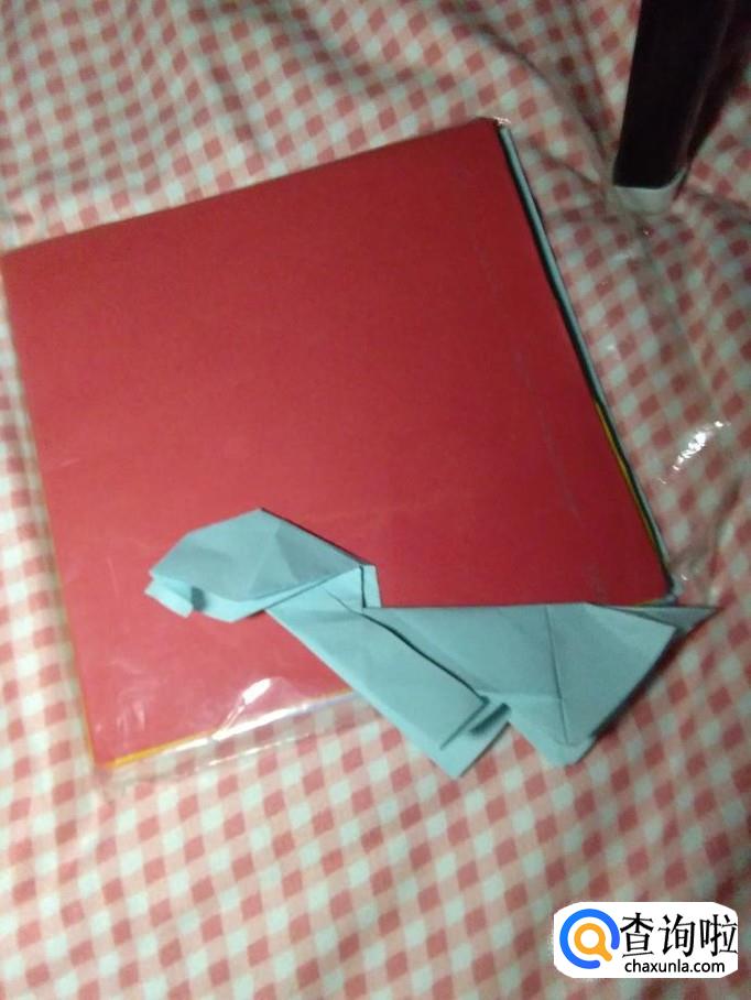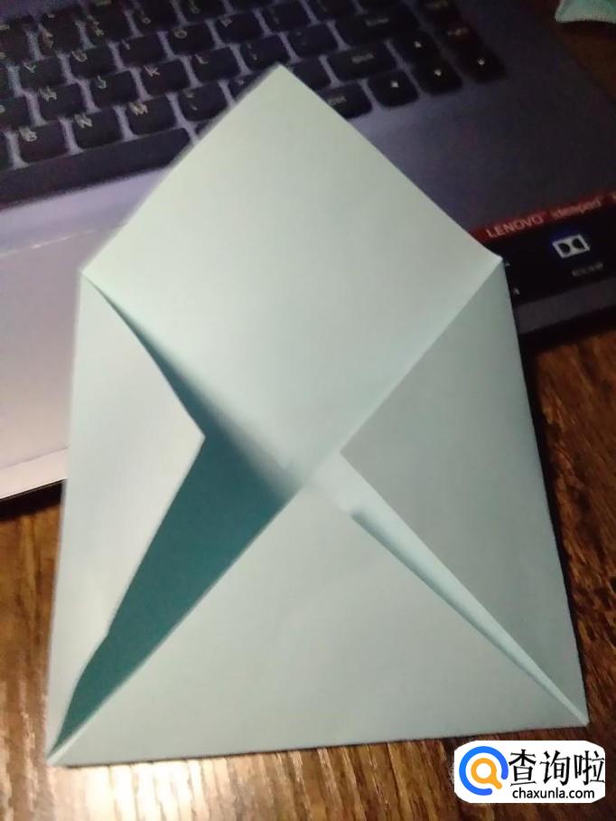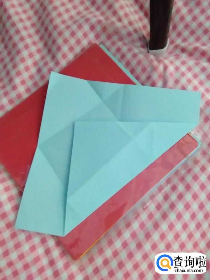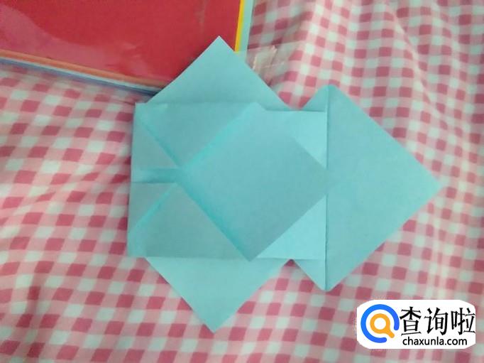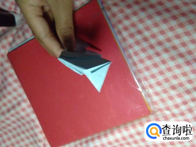 然后将作品翻过来,将下面的角翻上来,如图。