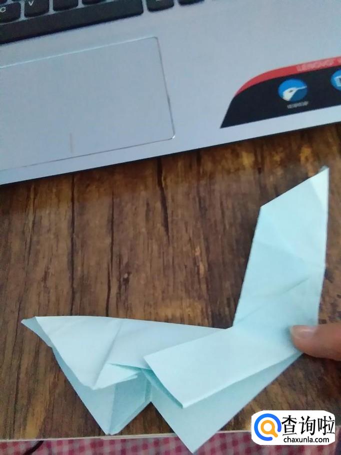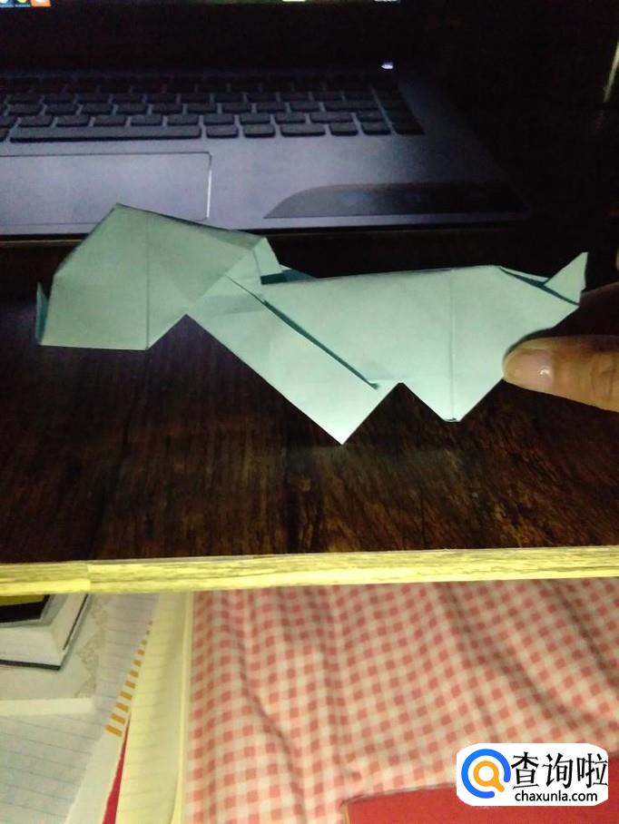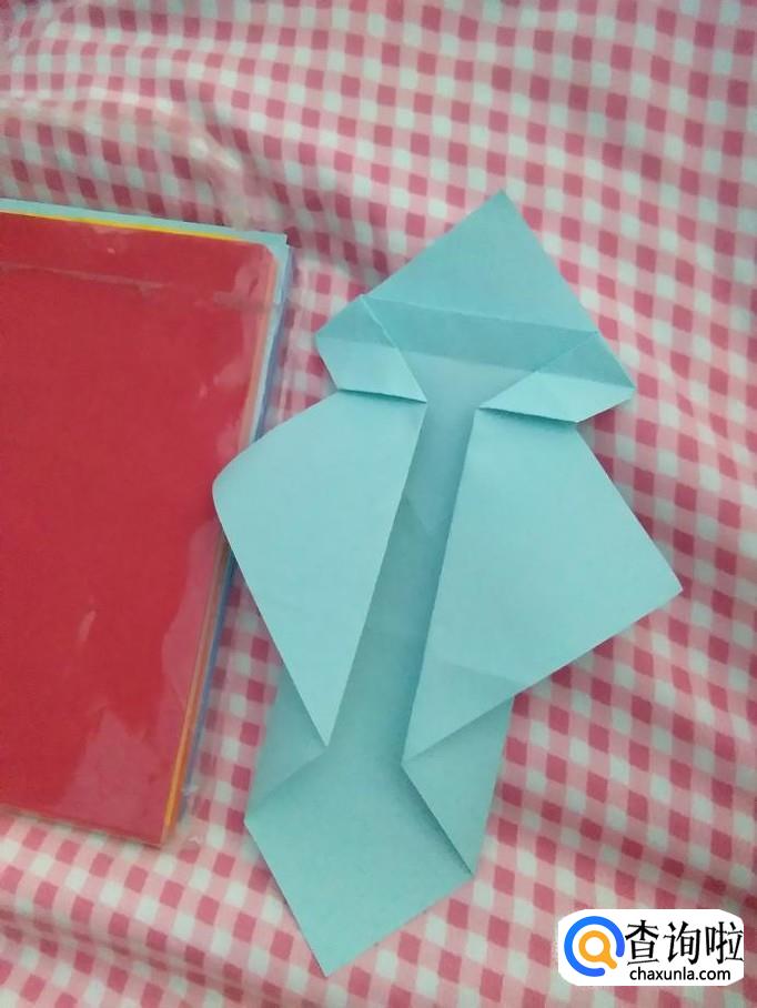 在头部折个小角,稍微打开,尾部也折个小角