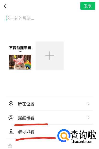 选择好以后,我们注意到页面下方有“谁可以看”和“提醒谁看”两个选项。然后根据自己的情况进行选择就可以了。