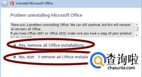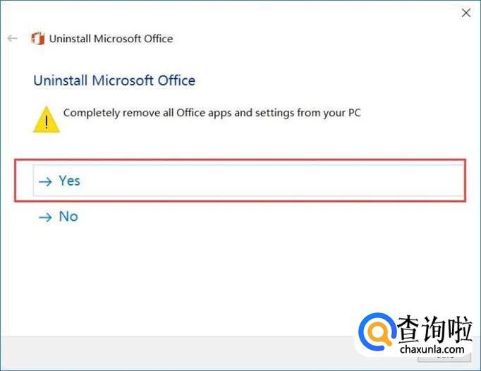 软件在检测到电脑中安装了Office软件之后,将弹出确认信息,点击“Yes”按钮,即可完整地卸载Office软件。