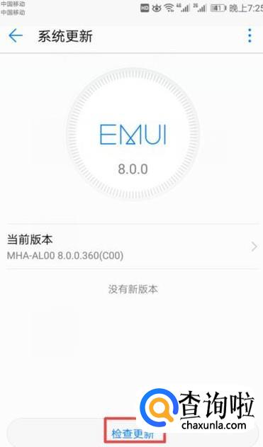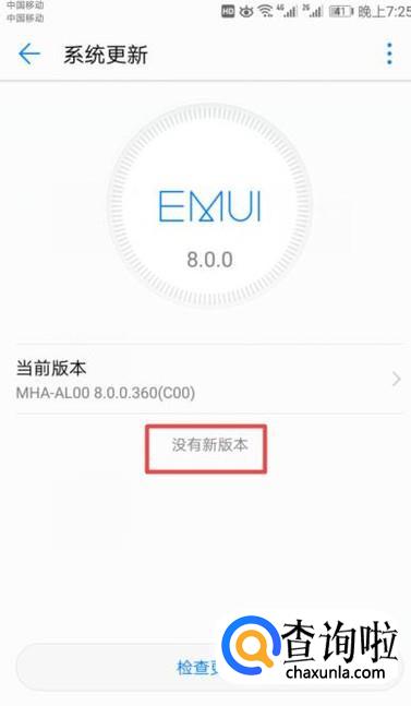 弹出的界面,我们点击检查更新;