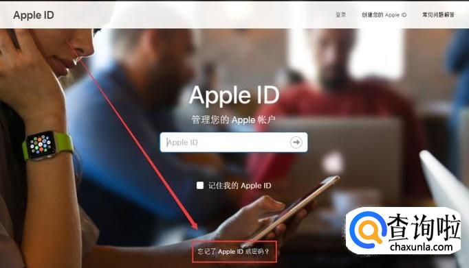 点击网页上的“忘记了Apple ID或密码”字样,