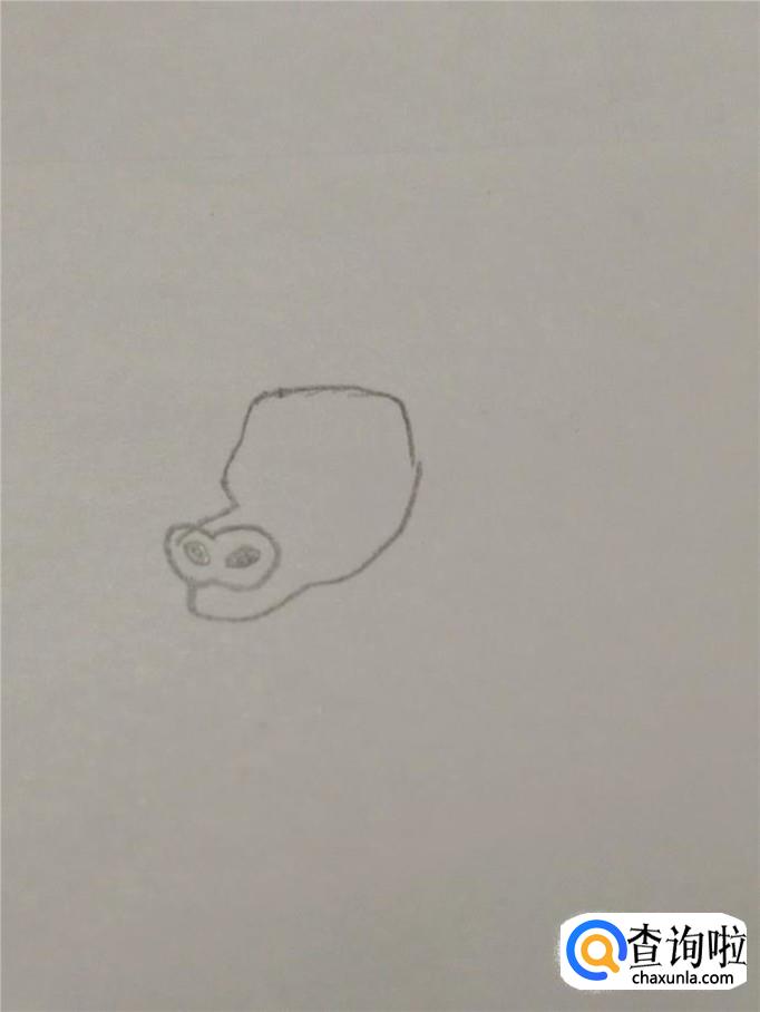在头的中间位置,画两个枣核形的黑点,表示眼睛。