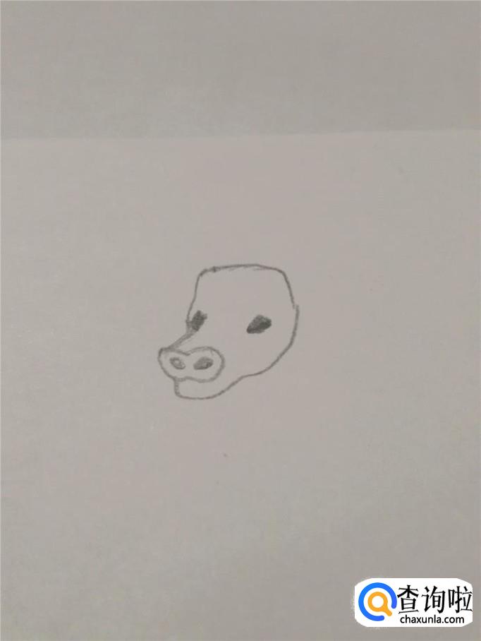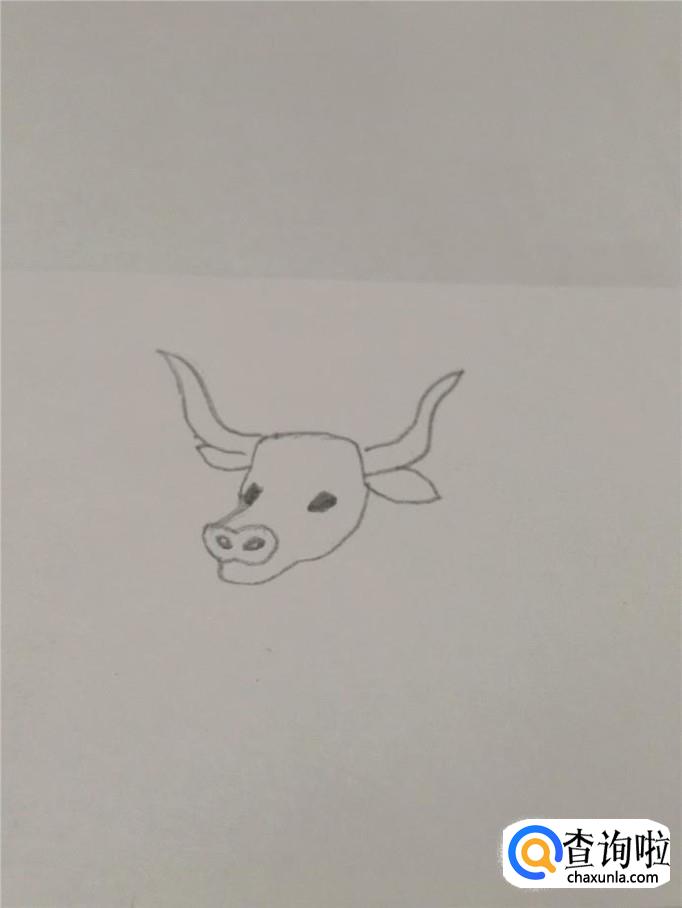 再画小公牛的头,先画窄窄的嘴,再画头的后半部分,这部分较宽。