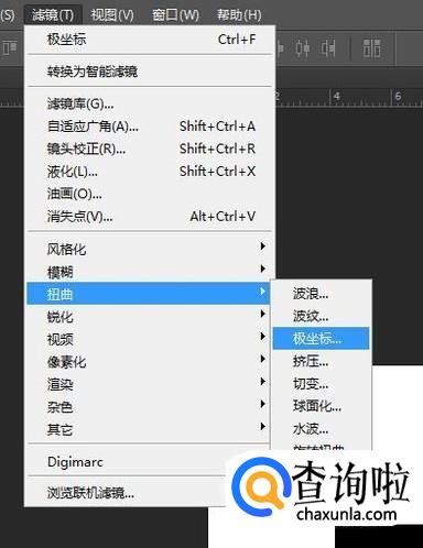 点击滤镜--扭曲--极坐标;