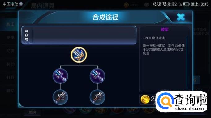 破军:物理攻击+200,被动技能:破军,对生命值低于50%的敌人造成额外的30%伤害。这件装备就是专门针对残血!我就不多说了,大家都懂得!