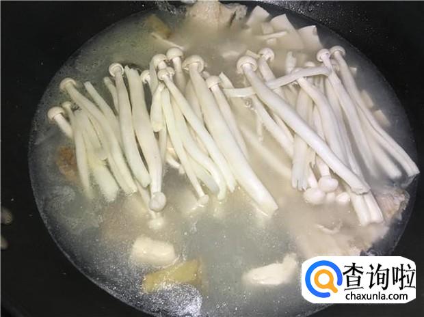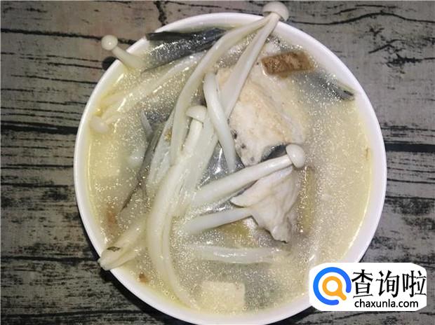 放入海鲜菇后,再煮5分钟左右,加入少许盐调味,即可享受美味清甜的鱼骨汤啦,味道很好喝哦。
