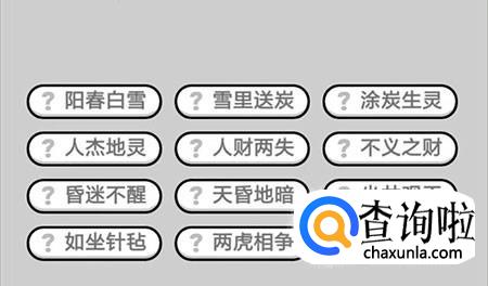 第396关:阳春白雪、雪里送炭、涂炭生灵、人杰地灵、人财两失、不义之财、昏迷不醒、天昏地暗、坐井观天、如坐针毡、两虎相争。