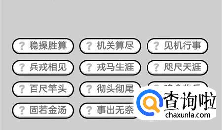 第394关:稳操胜算、机关算尽、见机行事、兵戎相见、戎马生涯、咫尺天涯、百尺竿头、彻头彻尾、鸣金收兵、固如金汤、事出无奈、安安稳稳。