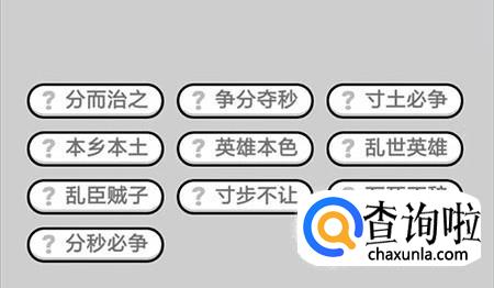 第391关:分而治之、争分夺秒、寸土必争、本乡本土、英雄本色、乱世英雄、乱臣贼子、寸步不让、万死不辞、分秒必争。