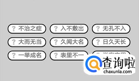 第398关:不治之症、入不敷出、无孔不入、大而无当、久闻大名、日久天长、一举成名、表里不一、举案齐眉。
