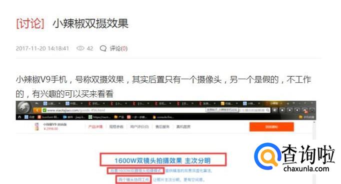 很多用户使用后的评价都不怎么高,无法达到大家预期使用的效果。其中有一个用户提到后置双摄像头,其中一个居然是假的。