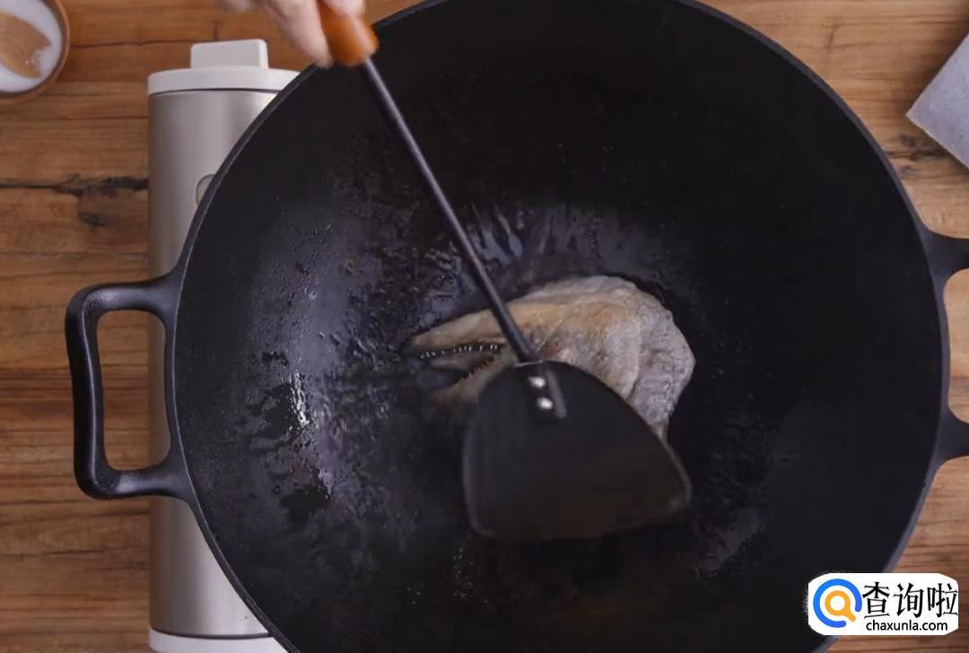 2、倒完油之后撒一点盐,防止鱼皮粘锅。