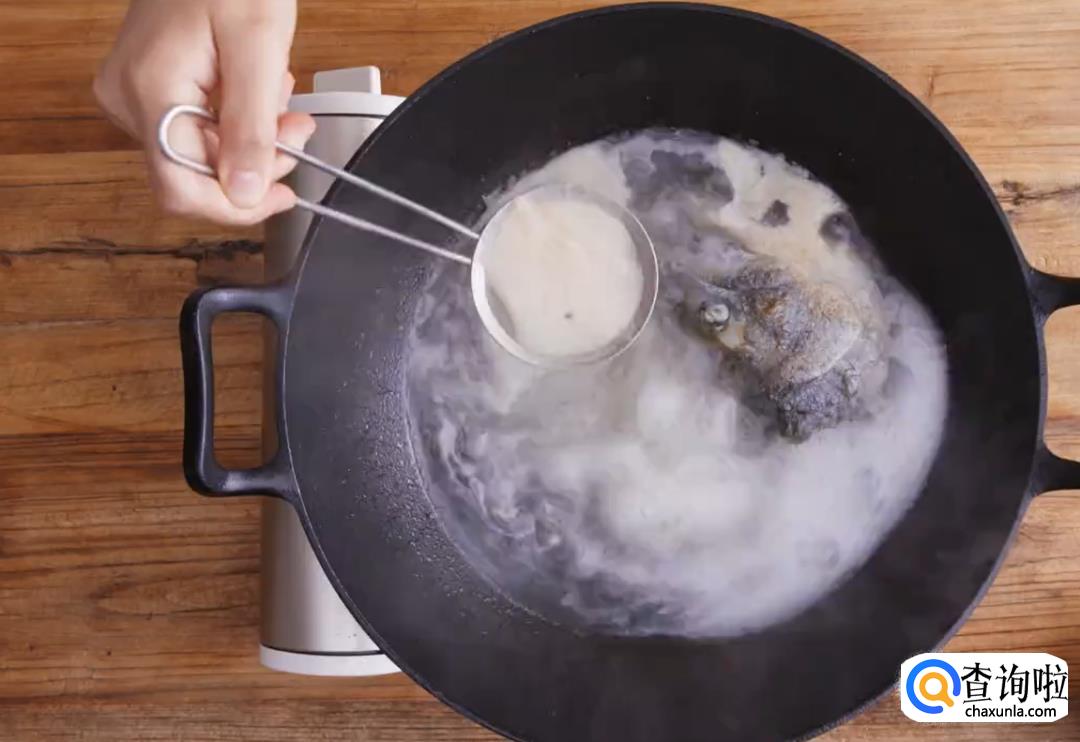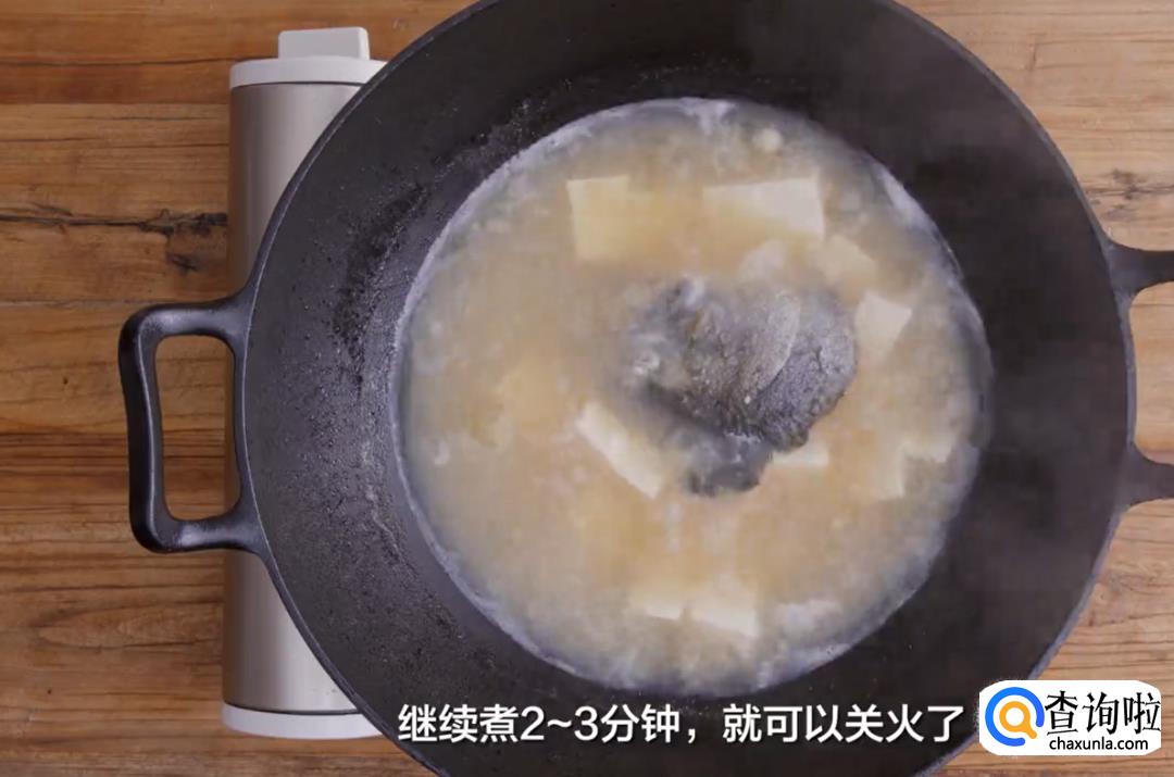 鱼头汤较浓的时候放入小块的嫩豆腐,煮2-3分钟关火,起锅后撒上一些葱花即可。