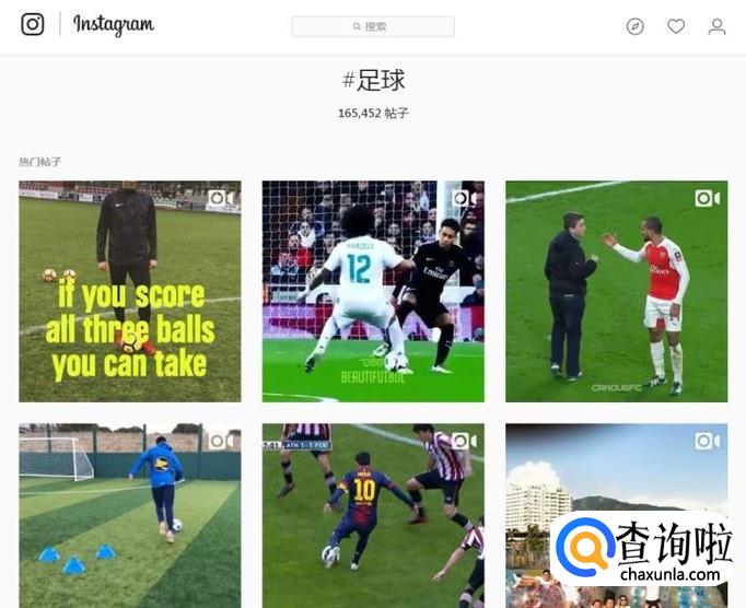 需要成功登陆并使用Instagram,是需要墙的。而且需要谷歌浏览器上操作。在你有这些条件后,登陆账号,在搜索框搜索你想要的视频,我们以足球为例。