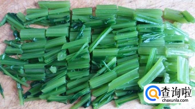 将根达菜清洗干净,叶子去掉只留下根茎,清洗干净,然后切成3厘米的小段备用,大蒜去皮剁碎备用。